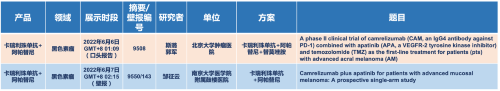 在黑色素瘤领域,918博天娱乐旗舰医药的卡瑞利珠单抗联合阿帕替尼(“双艾”组合)在2022 ASCO共入选1项口头报告和1项壁报展示。